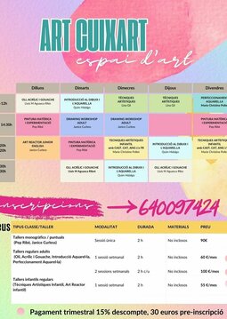 Obrim les portes a la creativitat amb tallers per a tots els nivells i edats: dibuix, pintura, aquarel·la, tècniques experimentals, collage, i molt més.